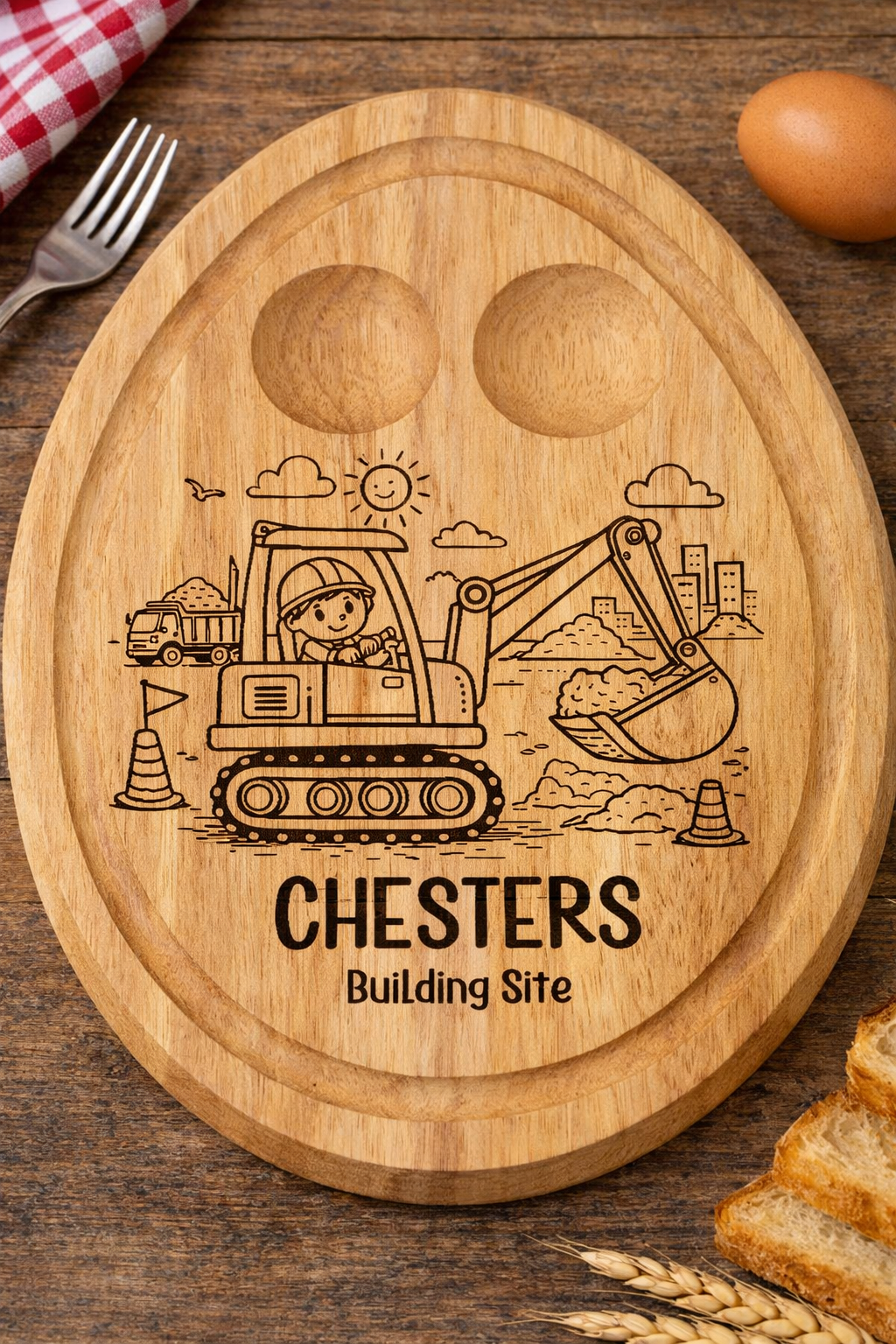 Personalised Digger Breakfast Board – Engraved Wooden Egg & Toast Board for Children - 004
